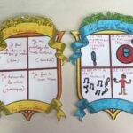 Bonjour chers parents! Le théâtre avec Leila c’est vraiment très bien. On a joué des petites scènes pour mieux communiquer (accords toltèques). Au Moyen Age les nobles trouvaient que le poisson ne sentait pas bon. Les poissonniers pensaient que c’était eux qui sentaient mauvais. L’épée de la parole est à double tranchant, on se protège avec le bouclier de l’indifférence, on doit rechercher la vérité et faire toujours de son mieux. Cela nous a servi à mieux se parler et nous avons réalisé un blason pour nous rappeler de ces quatre enseignements.