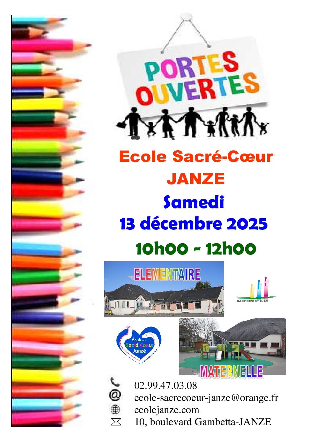 Les portes ouvertes de l’école auront lieu le samedi 13 décembre 2025 de 10h à 12hportes ouvertes ecole janzé 13-12-2025
