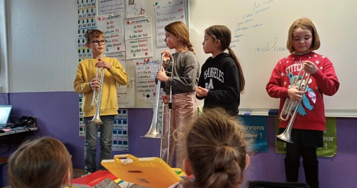 Les élèves de la classe de Philippe sont passés par petits groupes pour présenter à toutes les autres classes ce qu’était une classe orchestre.
